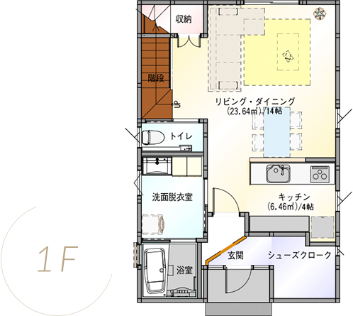 玄関から各部屋には必ずリビングを通る設計。